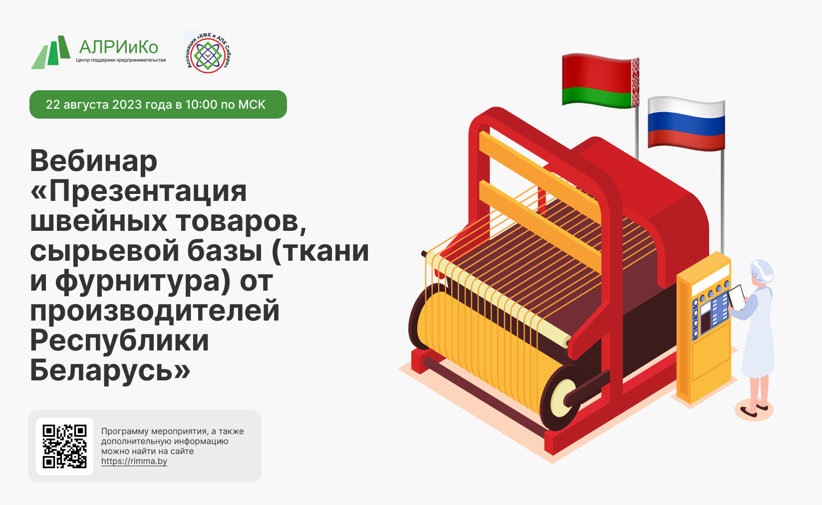 Приглашаем вас принять участие в нашем вебинаре «Презентация швейных товаров, сырьевой базы (ткани и фурнитура) от производителей Республики Беларусь».