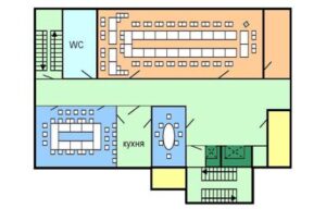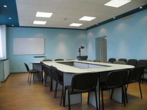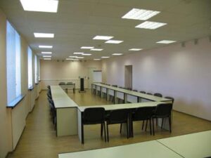 — учебный класс на 30 мест, оборудованный системой кондиционирования и мебелью, учебной доской с комплектом принадлежностей, который при необходимости вместе с находящейся в смежной комнате кухней может использоваться для презентаций, совещаний, бизнес — встреч и фуршетов;