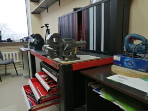 — мастерская-лаборатория (см. Рисунок), оснащенная инструментом и оснасткой, с возможностью использования резидентами технопарка (верстак, перфоратор, электролобзик, угловая шлифмашина, дрель-шуруповерт, набор оснастки, штангенциркуль электронный, тиски слесарные, лабораторный блок питания, термоанемометр, измеритель мощности солнечного излучения, солнечная панель, лазерный дальномер, мультиметр, слесарный инструмент и др.).